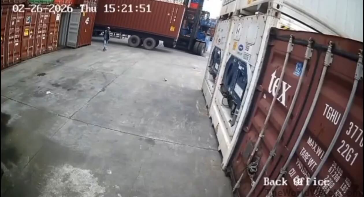 🥶🥶 Vụ việc xảy ra ở 1 cảng biển nước ngoài khi 1 người đàn ông đi bộ giữa các hàng cont đã bị 1 chiếc xe cẩu hạng nặng…