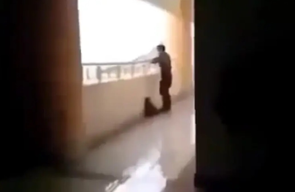 Không rõ nguyên nhân là gì nhưng nam sinh viên bỏ lại đồ đạc rồi nhảy mặc dù có 1 người khác tiến đến gần anh ta dường như muốn ngăn cản nhưng rồi sự việc xảy ra quá nhanh người đó đã nhảy xuống