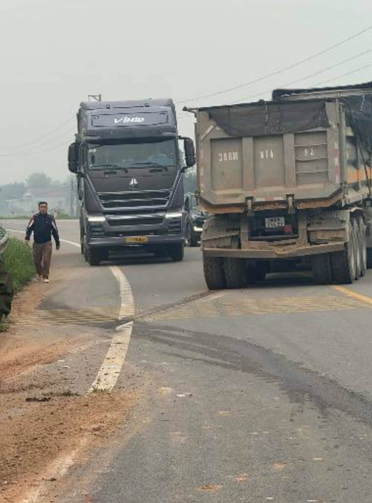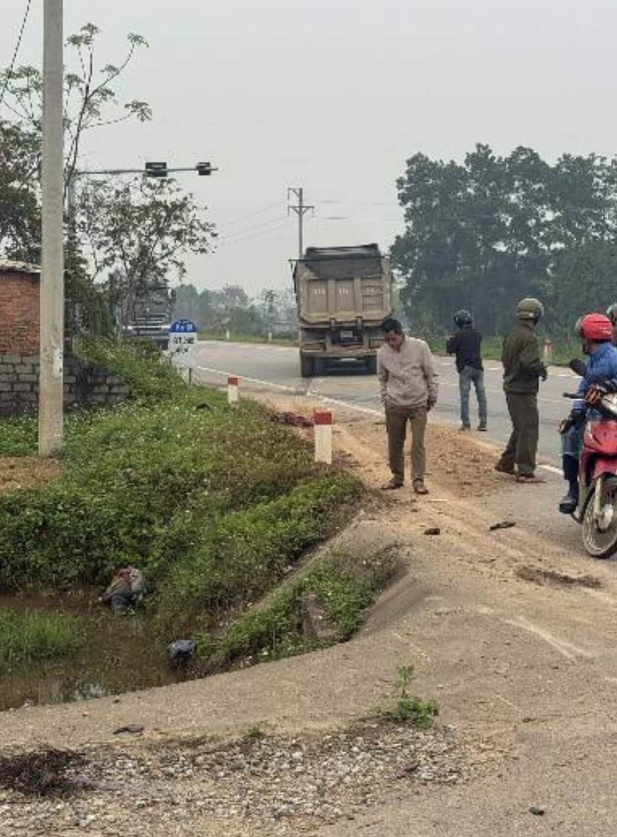 😨😨Ớn lạnh vụ xe tải tông chết người đi xe máy ở đường mới Lam Cốt Tân Yên Bắc Giang , nạn nhân bị đứt nát làm 2 không thể nhận dạng được